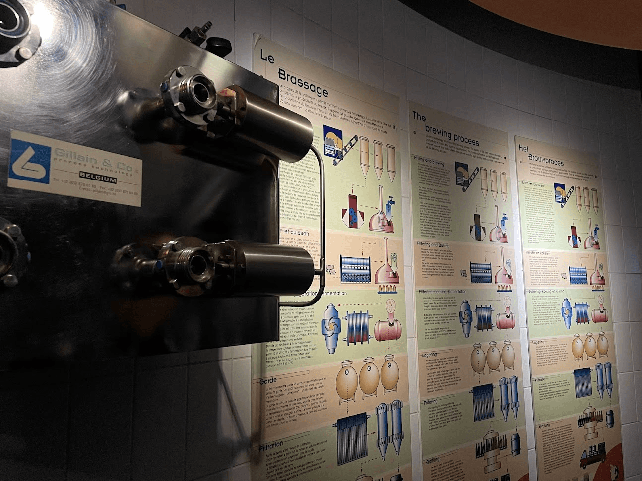 detailing how beer is made in 3 languages.