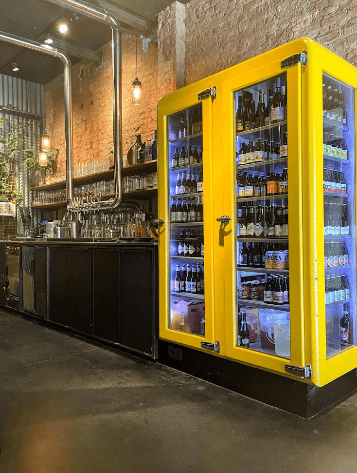 Bar & refrigerator at Belgian pizzeria,